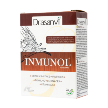 Contribuye al mantenimiento del sistema inmunitario en condiciones normales. Inmunol es un complemento alimenticio formulado con hongos, de utilización milenaria, llamados Reishi y Shiitake, minerales como el cobre y el selenio, vitamina C que contribuyen al mantenimiento del sistema inmunitario en condiciones normales, Tomillo, Equinácea y Própolis.