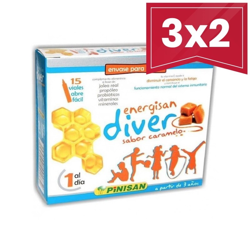 LLÉVATE 3 ENVASES Y PAGA SOLO 2 Viales con la energía más divertida para los peques. Con Jalea Real, Propóleo, Probióticos, Fósforo, Calcio, Miel y Vitaminas.